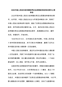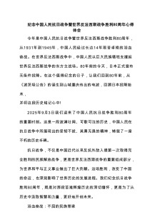 铭记历史,缅怀先烈,珍爱和平,开创未来,这样的纪念意义深远,如何让这份记忆成为推动社会进步的力量?下面是小编为您整理的纪念中国人民抗日战争暨世界反法西斯战争胜利80周年心得体会(精选完整版)范例,仅供参考,希望对您有所帮助。