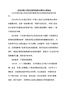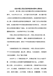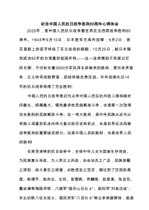 铭记历史,缅怀先烈,珍爱和平,开创未来。以下是小编为您整理分享的“纪念中国人民抗日战争胜利80周年心得体会精选样本”相关内容,供您学习参考!