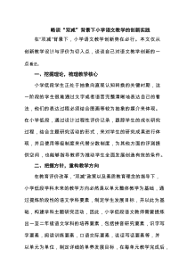 在双减政策下 小学语文教学注重培养学生核心素养 通过丰富课堂活动与实践 提升学生兴趣和能力 强化阅读与写作训练 增强文化自信 教学更加灵活高效以下由公文包网友为您分享的范文资料,供您参考学习之用。