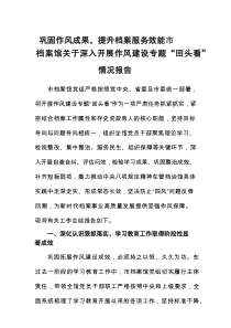 市档案馆通过深化作风建设,强化成果巩固,有效提升了档案服务效能,赢得了广泛好评!下面是网友整理分享的巩固作风成果,提升档案服务效能——市档案馆关于深入开展作风建设专题“回头看”情况报告相关资料,供大家学习参考,喜欢就分享吧!