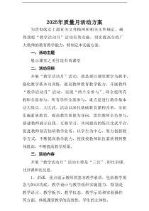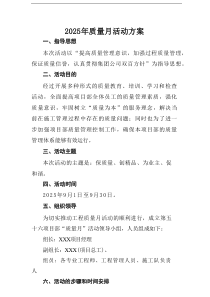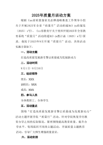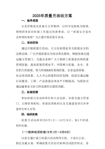 围绕提升产品质量和安全水平,组织系列宣传活动,增强全民质量意识,推动高质量发展。以下由网友整理分享的开展2025年全国《质量月》活动方案相关文档,供您学习参考,喜欢就分享吧!