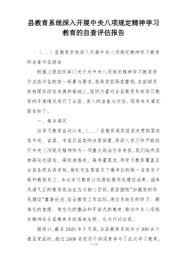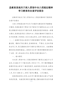 县教育系统全面开展中央八项规定精神学习教育活动,自查自纠,强化作风建设,提升廉洁自律意识。以下是小编为您整理分享的“县教育系统深入开展中央八项规定精神学习教育的自查评估报告”相关内容,供您学习参考!