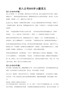 新员工加入公司后,需快速适应环境,了解企业文化,熟悉工作流程,与同事建立良好关系,积极参与团队合作,努力提升个人能力,为公司发展贡献力量。下面是网友整理分享的初入公司600字14篇范文相关资料,供大家学习参考,喜欢就分享吧!
