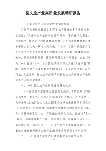 调研发现县域文旅产业需优化资源配置,提升服务质量,加强品牌建设,创新营销模式,促进可持续发展!以下由网友整理分享的县文旅产业高质量发展调研报告相关文档,供您学习参考,喜欢就分享吧!