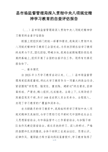 县市场监督管理局深入贯彻中央八项规定精神,开展学习教育自查评估,强化作风建设,提升工作效能。公文包网友为您分享整理的“县市场监督管理局深入贯彻中央八项规定精神学习教育的自查评估报告”范文资料,以供您参考学习之用,希望喜欢。