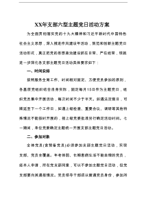 围绕学习教育、志愿服务、实践体验等主题开展多样化党日活动以增强党员意识提升组织凝聚力。以下由网友整理分享的“XX年支部六型主题党日活动方案”相关材料,便您学习参考,喜欢就分享给朋友吧!