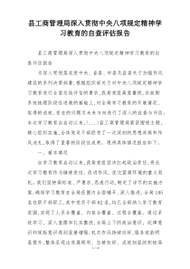 县工商管理局全面检查落实中央八项规定精神情况,加强学习教育,确保作风建设持续深入。以下由网友整理分享的县工商管理局深入贯彻中央八项规定精神学习教育的自查评估报告相关文档,供您学习参考,喜欢就分享吧!