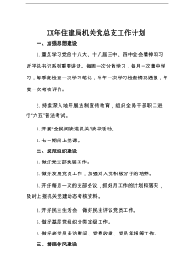 住建局机关党总支将加强党建引领,深化作风建设,提升服务效能,推动各项工作高质量发展。下面是小编为您整理的XX年住建局机关党总支工作计划范例,仅供参考,希望对您有所帮助。