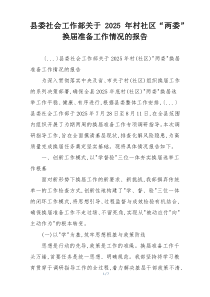县委社会工作部积极推进村社区“两委”换届准备工作,已制定详细方案,开展培训,确保选举顺利进行。以下是阿拉网友分享的“县委社会工作部关于2025年村社区“两委”换届准备工作情况的报告”,供您学习参考,希望有所用途!