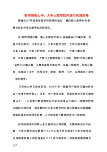 大单元教学注重知识整合与能力培养相结合,通过系统设计和灵活运用多种教学方法,提升学生综合素养,促进全面发展。以下由网友整理分享的“2025教育随笔心得:大单元教学的内涵与实施策略”相关材料,便您学习参考,喜欢就分享给朋友吧!