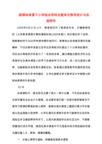 在新课程标准指导下,小学综合学科通过主题单元设计与实施,促进学生全面发展,提升教学效果。下面是网友整理分享的2025新课标背景下小学综合学科主题单元教学设计与实施研究相关资料,供大家学习参考,喜欢就分享吧!