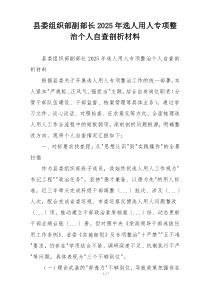 组织部深入剖析选人用人问题,查找制度漏洞,强化纪律意识,确保公平公正,提升队伍素质。以下由网友整理分享的“县委组织部副部长2025年选人用人专项整治个人自查剖析材料”相关材料,便您学习参考,喜欢就分享给朋友吧!