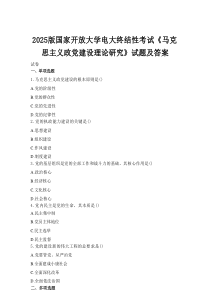 试题涵盖马克思主义政党建设理论基础、原则、实践及历史经验等内容,答案详实全面。以下是小编为您整理分享的“2025版国家开放大学电大终结性考试《马克思主义政党建设理论研究》试题及答案”相关内容,供您学习参考!