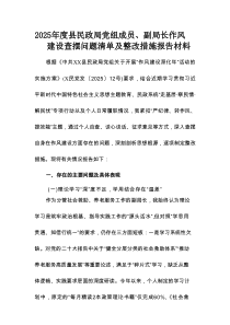 民政局党组成员、副局长作风建设查摆问题,提出整改措施,如何确保落实到位?下面是网友整理分享的2025年度县民政局党组成员、副局长作风建设查摆问题清单及整改措施报告材料相关资料,供大家学习参考,喜欢就分享吧!