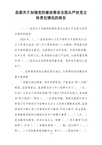 县委高度重视党的建设,全面落实从严治党主体责任,强化政治引领,严格纪律监督,提升组织效能。以下由公文包网友为您分享的范文资料,供您参考学习之用。