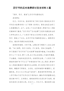 弘扬节俭美德,抵制浪费陋习,倡导绿色生活,共建节约型社会!下面是小编为您整理的厉行节约反对浪费研讨发言材料3篇范例,仅供参考,希望对您有所帮助。