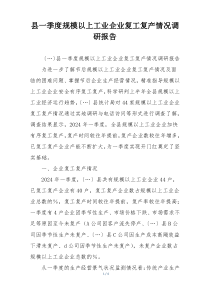 全县一季度规模以上工业企业复工复产进展顺利,多数企业已恢复正常生产水平,整体经济活力逐步提升。下面网友分享多篇相关内容供您参考学习,希望有您喜欢的。