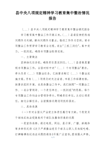 全县深入学习中央八项规定精神,强化教育,集中整治,成效显著。下面是小编为您整理的县中央八项规定精神学习教育集中整治情况报告范例,仅供参考,希望对您有所帮助。