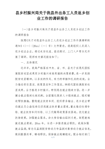 调研显示,返乡创业人员面临资金、技术等多方面挑战,如何有效支持成为关键问题?下面是网友整理编辑的县乡村振兴局关于我县外出务工人员返乡创业工作的调研报告相关范文,供大家参考学习,喜欢就下载支持!