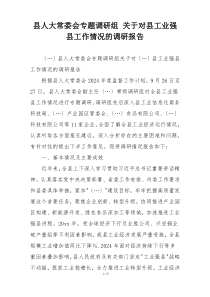 县人大常委会专题调研组对工业强县工作进行全面调研,分析现状,提出建议,促进县域经济高质量发展。以下是小编为您整理分享的“县人大常委会专题调研组 关于对县工业强县工作情况的调研报告”相关内容,供您学习参考!