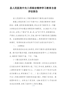县人民医院深入学习中央八项规定精神,自查严格,整改措施到位,成效显著!下面是小编为您整理的县人民医院中央八项规定精神学习教育自查评估报告范例,仅供参考,希望对您有所帮助。