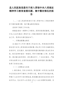 县人民医院党委深入贯彻中央八项规定精神,通过学习教育查摆问题并集中整治,成效显著!下面网友分享多篇相关内容供您参考学习,希望有您喜欢的。