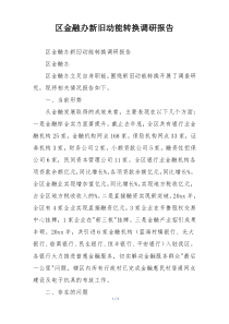 区金融办调研发现,传统产业转型升级与新兴产业培育并进,金融服务需进一步优化以促进经济高质量发展。以下是阿拉网友分享的“区金融办新旧动能转换调研报告”,供您学习参考,希望有所用途!