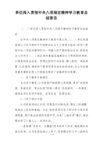 单位全面贯彻中央八项规定精神,强化学习教育,提升作风纪律,成效显著!以下是小编为您整理分享的“单位深入贯彻中央八项规定精神学习教育总结报告”相关内容,供您学习参考!