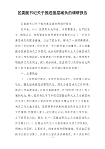 区委副书记深入调研基层减负工作,提出多项具体措施,旨在减轻负担,提升工作效率,激发干部活力!以下由网友整理分享的区委副书记关于推进基层减负的调研报告相关文档,供您学习参考,喜欢就分享吧!