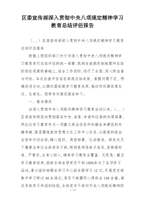 区委宣传部深入贯彻中央八项规定精神,通过学习教育活动提升了干部作风,增强了纪律意识,成效显著。下面是网友整理编辑的区委宣传部深入贯彻中央八项规定精神学习教育总结评估报告相关范文,供大家参考学习,喜欢就下载支持!