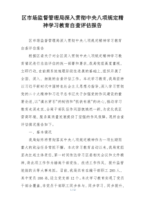 区市场监督管理局深入贯彻中央八项规定精神,强化学习教育,严格自查自纠,成效显著!以下是阿拉网友分享的“区市场监督管理局深入贯彻中央八项规定精神学习教育自查评估报告”,供您学习参考,希望有所用途!