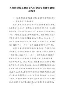 报告分析了纪检监察监督与财会监督的现状,提出加强两者间信息共享、机制协同的建议。下面是网友整理编辑的区推进纪检监察监督与财会监督贯通协调调研报告相关范文,供大家参考学习,喜欢就下载支持!