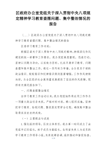 区政府办公室党组深入学习中央八项规定,积极开展教育查摆与集中整治工作,成效显著,是否有效推进了作风建设?以下由公文包网友为您分享的范文资料,供您参考学习之用。