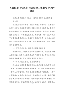 区政法委书记强调,要强化责任担当,细化工作措施,确保村社区创建工作有序推进,取得实效。下面是网友整理编辑的区政法委书记在村社区创建工作督导会上的讲话相关范文,供大家参考学习,喜欢就下载支持!