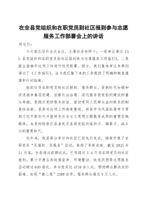 会议强调全县党组织和在职党员应积极参与社区志愿服务,共同推动社区发展与和谐建设,携手共创美好未来!下面是小编为您整理的在全县党组织和在职党员到社区报到参与志愿服务工作部署会上的讲话【参考】范例,仅供参考,希望对您有所帮助。