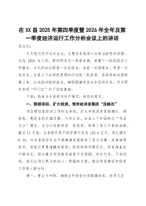 会议深入分析了经济形势,明确了发展目标和任务,部署了关键措施,为未来发展指明方向!以下是小编为您整理分享的“在县2025年第四季度暨2026年全年及第一季度经济运行工作分析会议上的讲话【参考】”相关内容,供您学习参考!
