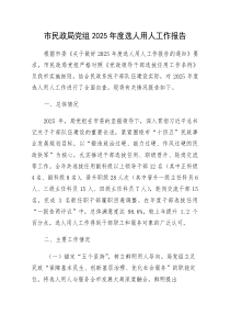 民政局在选人用人方面坚持公平公正原则,注重能力与品德并重,优化队伍结构,提升服务水平,成效如何?以下由网友整理分享的(新编)市民政局2025年度选人用人工作报告相关文档,供您学习参考,喜欢就分享吧!
