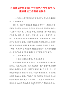 县统计局党组深入贯彻全面从严治党要求,强化党风廉政建设,提升队伍素质,确保统计数据真实准确,推动各项工作高效开展。下面是网友整理编辑的县统计局党组2025年全面从严治党和党风廉政建设工作总结的报告相关范文,供大家参考学习,喜欢就下载支持!