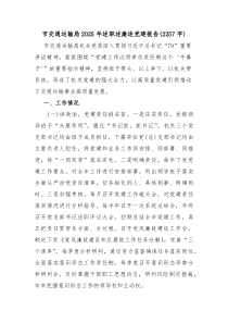 市交通运输局加强党风廉政建设,推进交通基础设施建设,优化公共交通服务,提升行业管理水平。以下由网友整理分享的“(新编)市交通运输局2025年述职述廉述党建报告(2257字)”相关材料,便您学习参考,喜欢就分享给朋友吧!