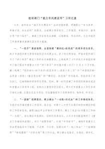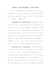 组织部门围绕能力作风建设开展系列活动,加强培训学习,提升工作效率,优化服务态度,增强团队凝聚力。下面是网友整理编辑的组织部门能力作风建设年活动工作汇报相关范文,供大家参考学习,喜欢就下载支持!