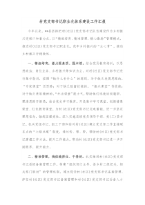 推进村党支部书记职业化体系建设,明确职责,强化培训,完善考核,提升待遇,激发工作积极性。下面是小编为您整理的村党支部书记职业化体系建设工作汇报范例,仅供参考,希望对您有所帮助。