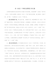 村社区干部队伍通过加强培训、优化结构、完善考核机制等措施,提升了整体素质和服务能力。以下由网友整理分享的“村社区干部队伍管理工作汇报”相关材料,便您学习参考,喜欢就分享给朋友吧!