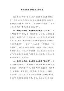 青年发展型县域试点工作稳步推进,聚焦教育、就业、创业等关键领域,成效显著,获得广泛认可。以下由网友整理分享的“青年发展型县域试点工作汇报”相关材料,便您学习参考,喜欢就分享给朋友吧!