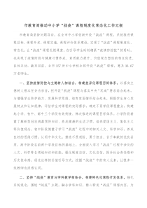 市教育局积极推进中小学战疫课程建设,确保其制度化常态化发展,全面提升学生健康意识与防护能力!下面是小编为您整理的市教育局推动中小学战疫课程制度化常态化工作汇报范例,仅供参考,希望对您有所帮助。