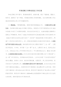 市局党建工作注重创新,强化组织建设,深化服务意识,提升党员素质,激发基层活力,成效显著!下面是小编为您整理的市局党建工作特色亮点工作汇报范例,仅供参考,希望对您有所帮助。