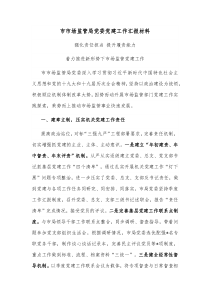 市市场监管局党委注重党建引领,强化组织建设,提升队伍素质,创新工作方式,推动业务与党建深度融合。下面是网友整理分享的市市场监管局党委党建工作汇报材料相关资料,供大家学习参考,喜欢就分享吧!