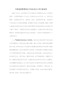 市场监督管理局强化食品安全监管,推进专项整治,提升检测能力,保障公众饮食安全,成效如何?下面是网友整理分享的市场监督管理局关于食品安全工作汇报材料相关资料,供大家学习参考,喜欢就分享吧!