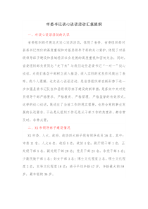 市委书记开展谈心谈话活动,深入了解干部思想动态,加强沟通交流,促进工作落实。以下由网友整理分享的市委书记谈心谈话活动汇报提纲相关文档,供您学习参考,喜欢就分享吧!