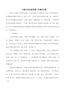 市委办党支部扎实开展党建工作,强化理论学习,提升党员素质,丰富组织生活,增强党组织凝聚力。以下由公文包网友为您分享的范文资料,供您参考学习之用。