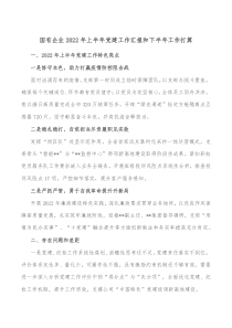 上半年国有企业党建工作稳步推进,取得显著成效;下半年将继续深化理论学习,加强组织建设,推动党建与业务深度融合。下面是网友整理编辑的国有企业20XX年上半年党建工作汇报和下半年工作打算相关范文,供大家参考学习,喜欢就下载支持!